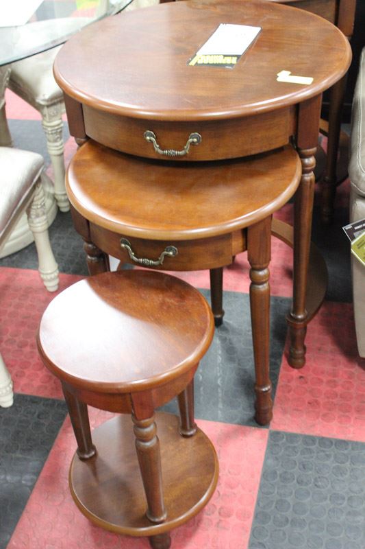 WOODEN 3 PIECE NESTING TABLE SET WITH 2 DRAWERS