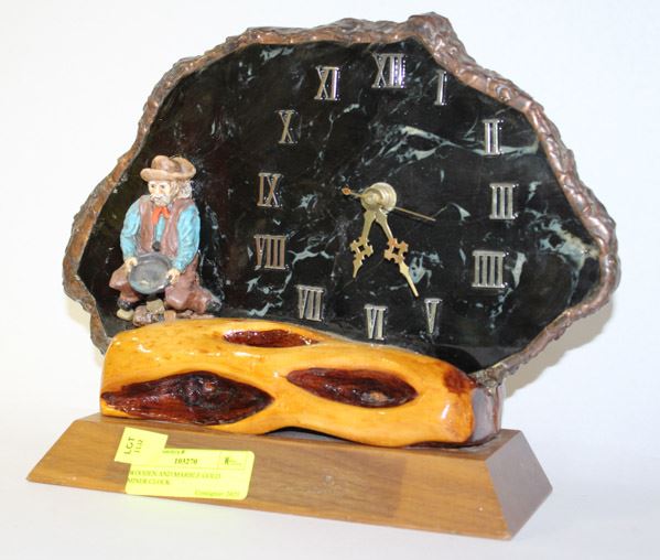 WOODEN AND MARBLE GOLD MINER CLOCK