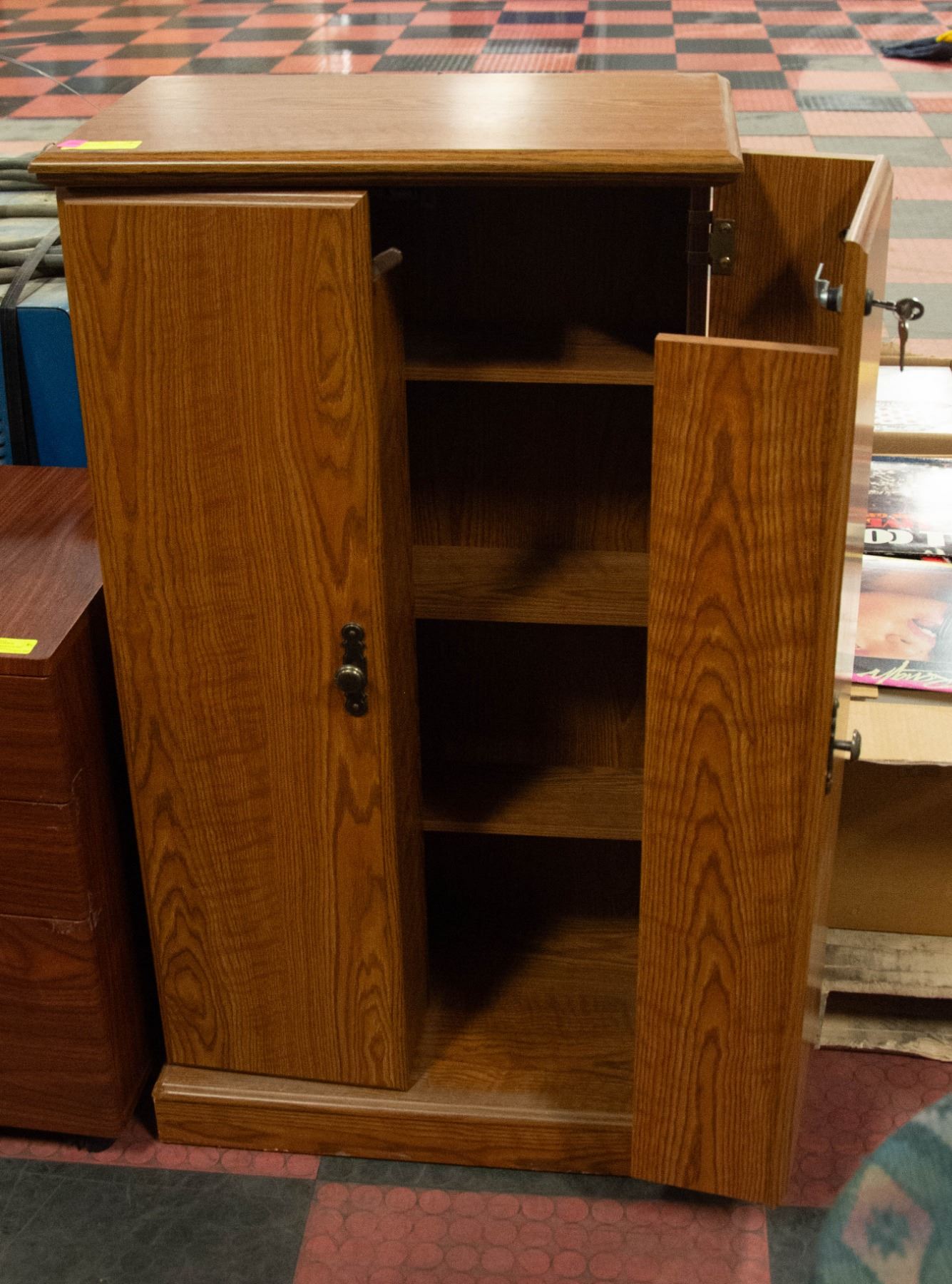 WOODEN BAR WITH FOLD OUT SHELVES H-44"