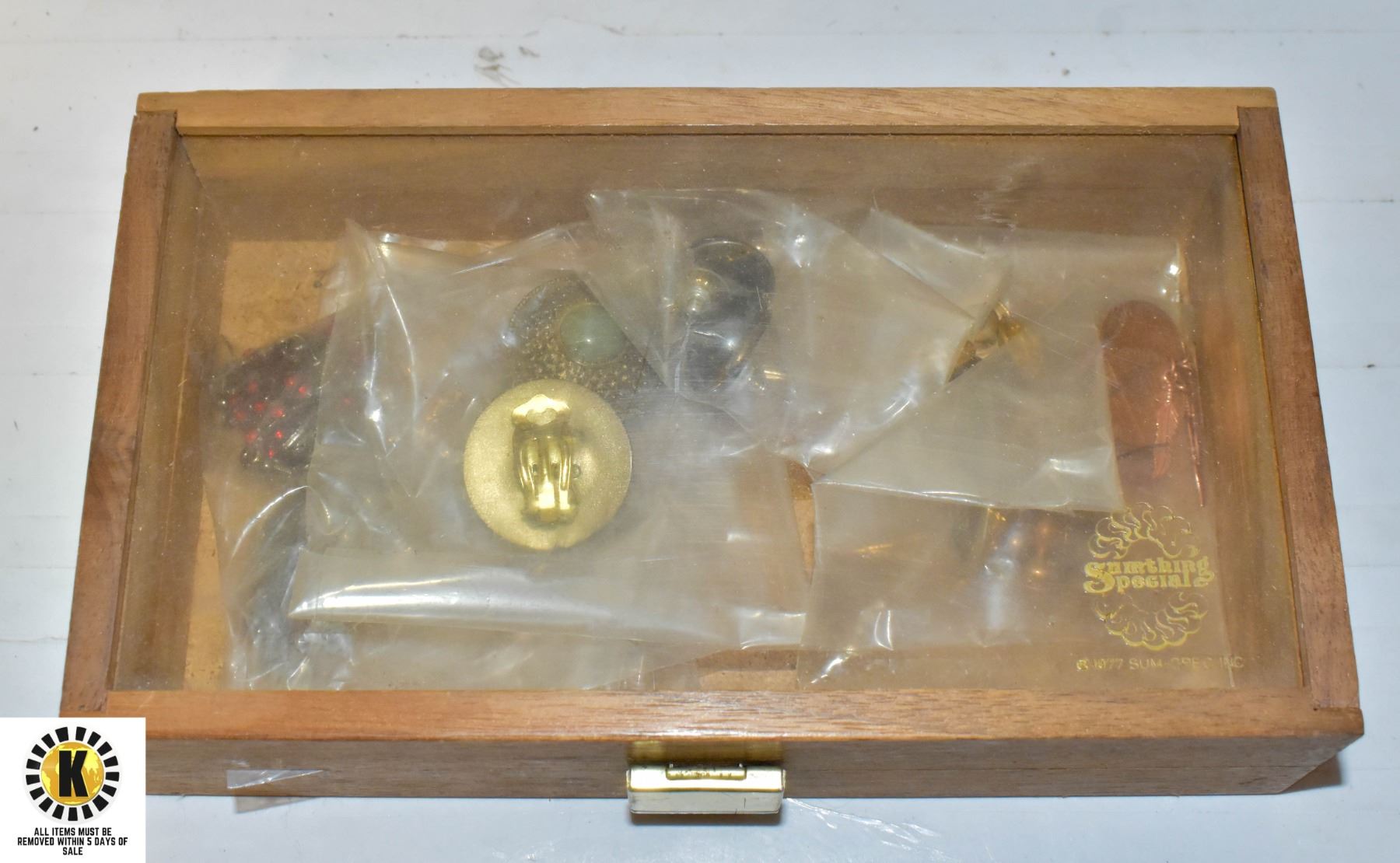 WOODEN BOX W/ CLEAR TOP FULL OF NEW EARRING SETS