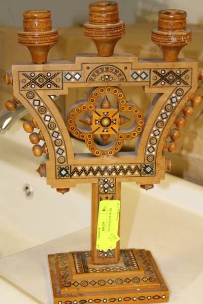 WOODEN CANDLEHOLDER WITH PEARL INSERTS
