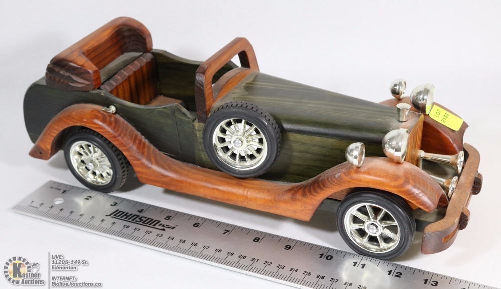 WOODEN CAR ORNAMENT W/ MOVABLE WHEELS
