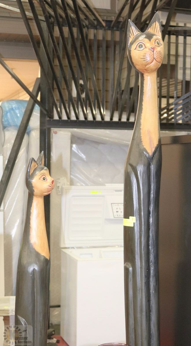 WOODEN CAT ORNAMENTS 39" AND 59" TALL