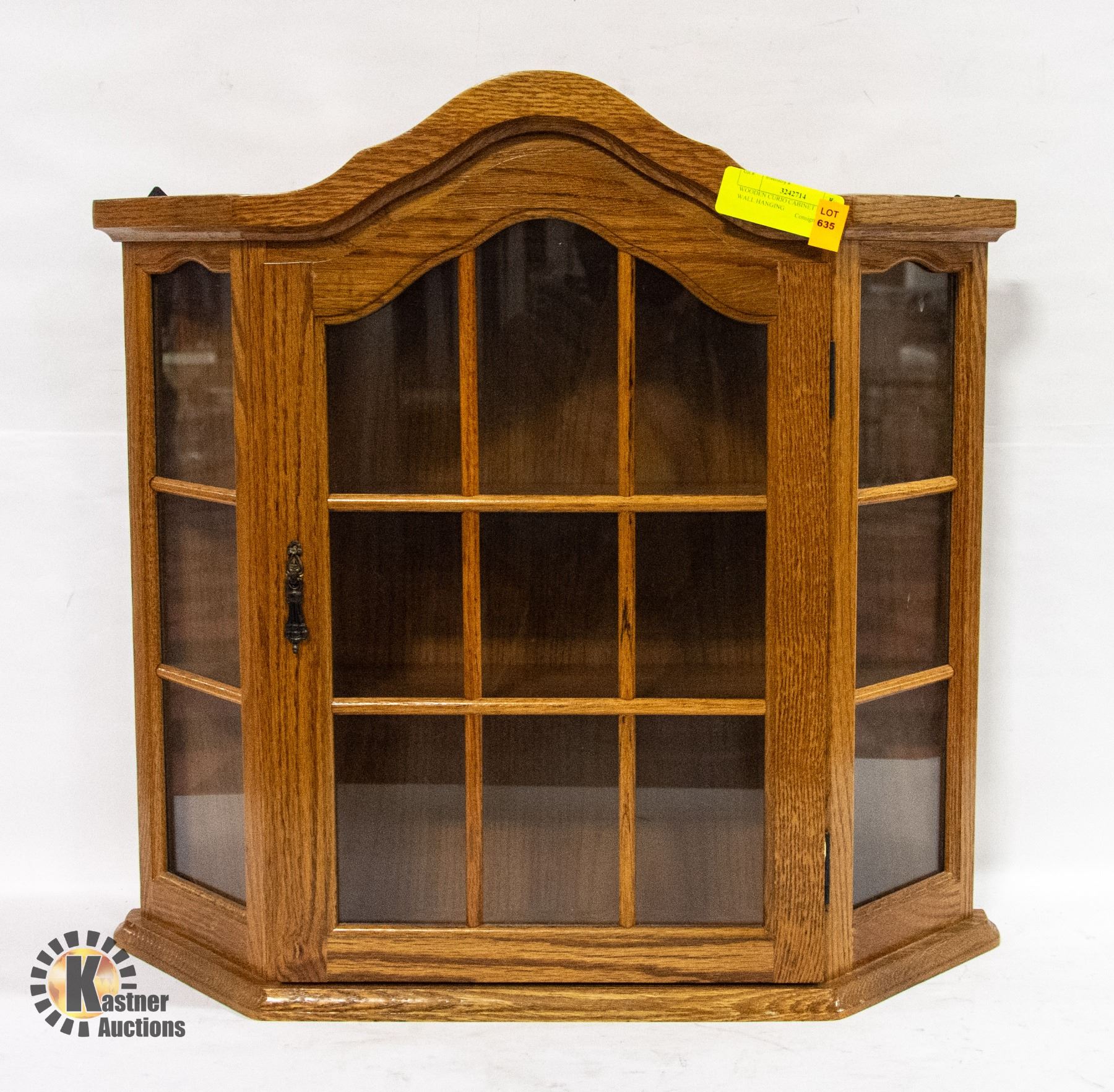 GLASS + WOOD, 3 TIER INTERIOR H-20.75" W-6.5" L-22" **ALL ITEMS MUST BE REMOVED BY 5PM SATURDAY, AUGUST 17th 2024. ALL REMAINING ITEMS WILL BE SUBJECT TO A $6.00 PER DAY STORAGE CHARGE. ANY ITEMS REMAINING AFTER MONDAY, SEPTEMBER 9TH 2024 WILL BE CONSIDERED FORFEITED. NO REFUNDS WILL BE ISSUED FOR FORFEITED ITEMS. TO SCHEDULE A PICK UP APPOINTMENT CLICK HERE