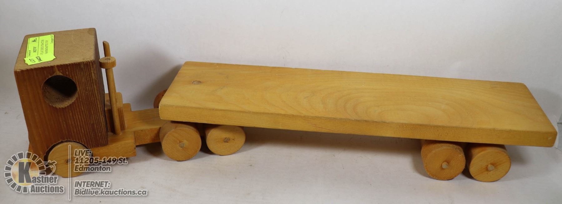 WOODEN FLAT DECK TRACTOR TRAILER HANDCRAFTED TOY