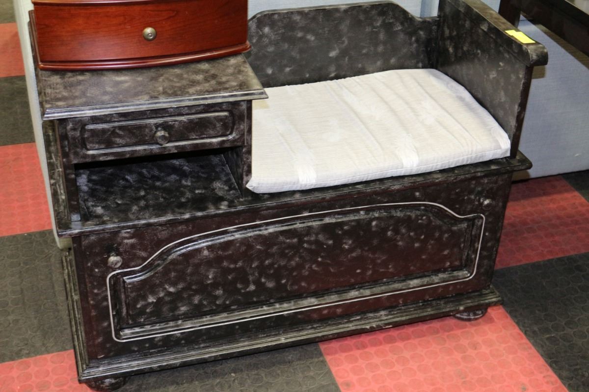HAS PHONE DESK/ DRAWER AND OPENING FRONT FOR SHOES