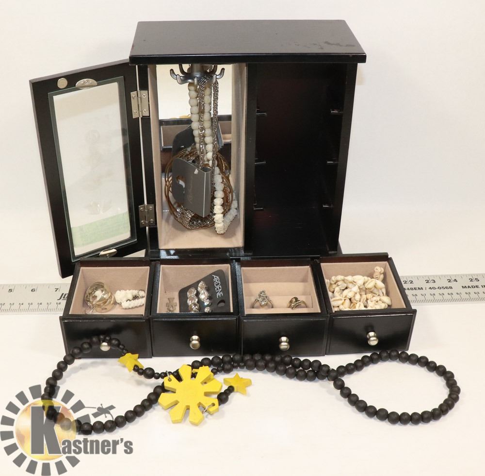 WOODEN JEWELLERY BOX WITH ASS'T JEWELLERY