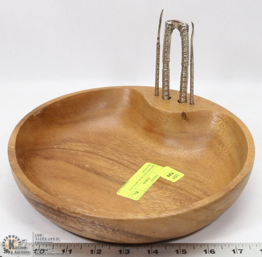 WOODEN NUT BOWL WITH NUT CRACKERS