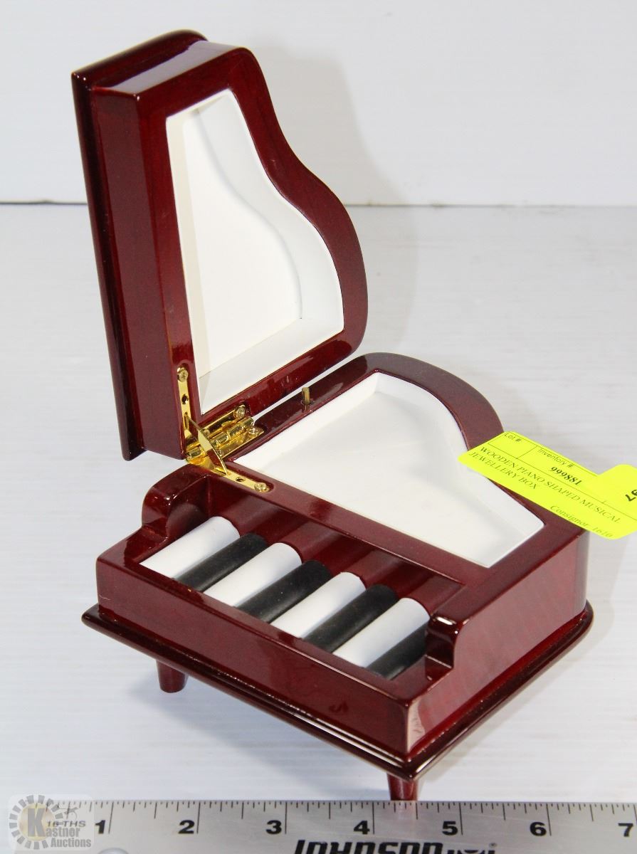 WOODEN PIANO SHAPED MUSICAL JEWELLERY BOX