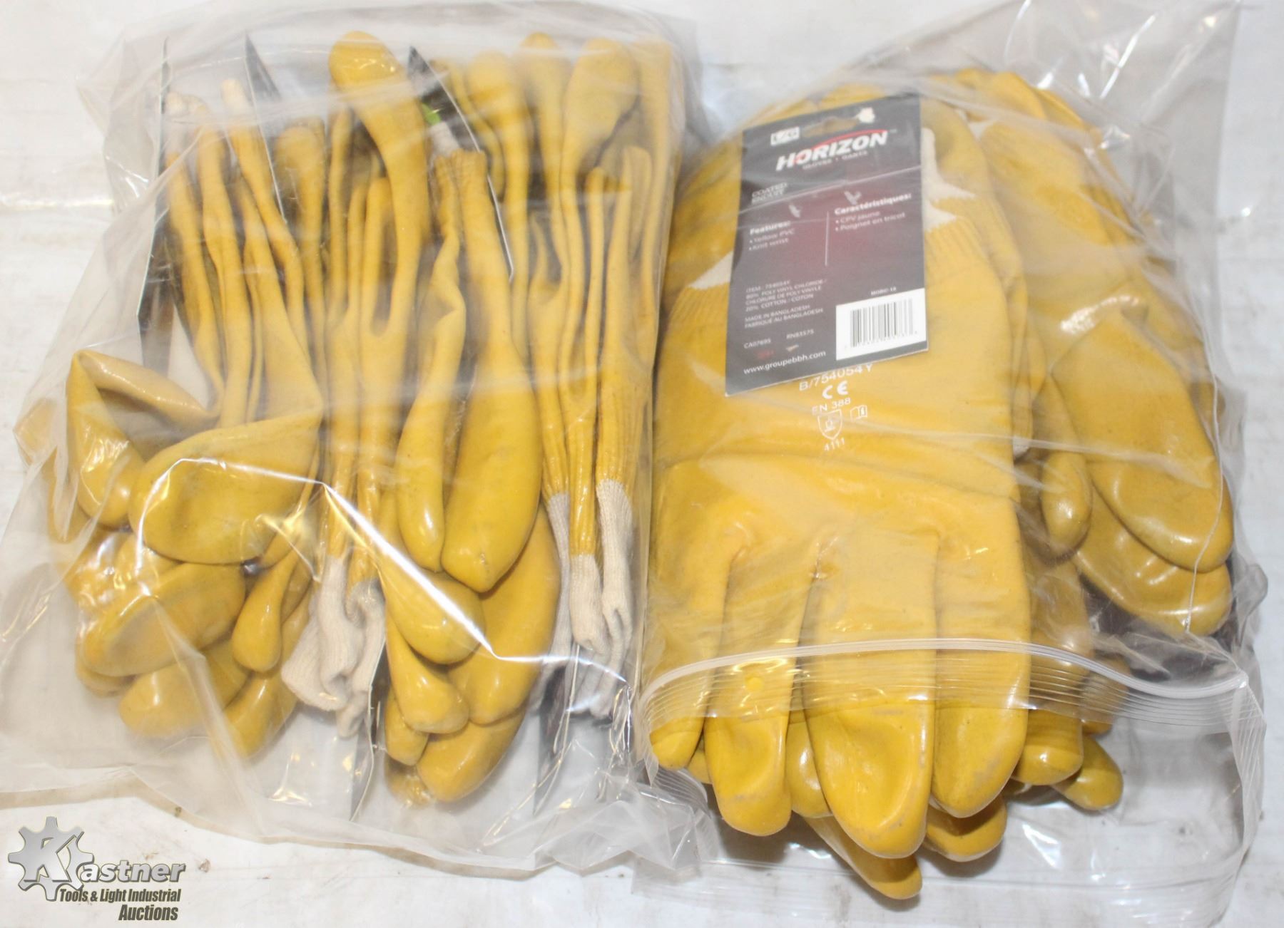 NEW YELLOW PVC SIZE -L- GLOVES WITH KNIT LINER - LOT OF 12 PAIRS