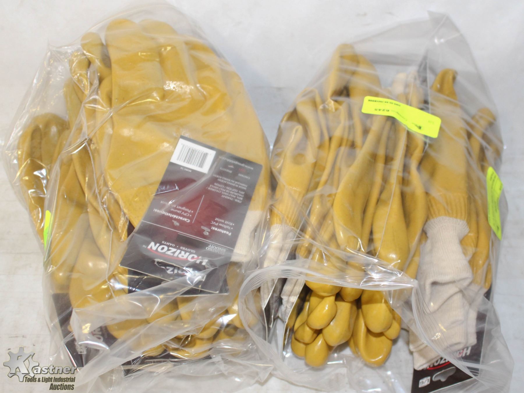 NEW YELLOW PVC SIZE -L- GLOVES WITH KNIT LINER - LOT OF 12 PAIRS