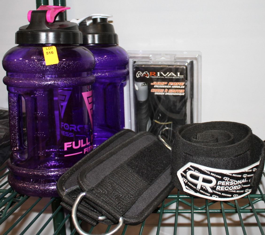 WORKOUT LOT: INCLUDES WATER JUGS, WRAPS, NEW