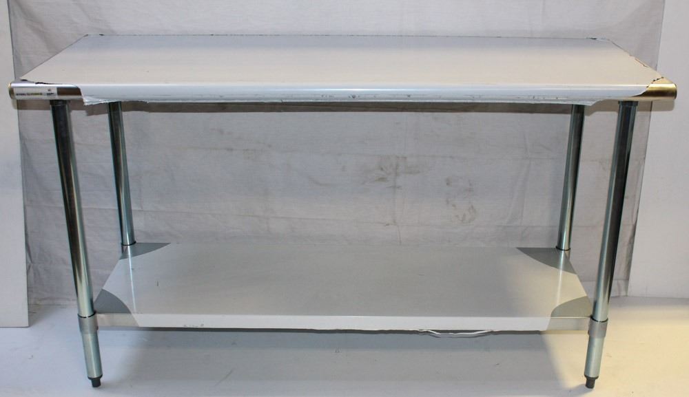 MV40 - WORKTABLE 24"X60"X34"H, 16GA.430S/S FLAT TOP SHELF 18GA.GALVANIZED UNDERSHELF AND HAT CHANNEL GALVANIZED LEG AND SOCKET, PLASTIC BULLET FOOT