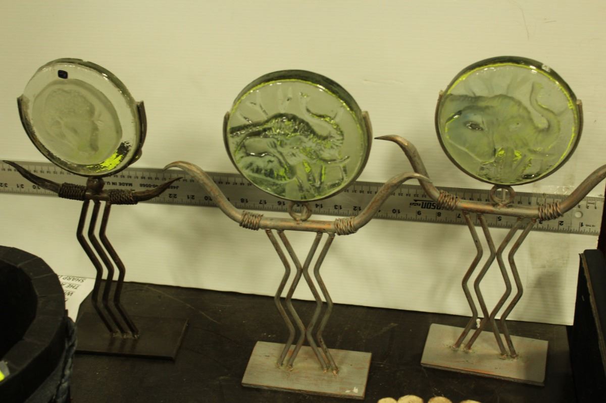 WROUGHT IRON CANDLE HOLDER WITH DECORATIVE GLASS