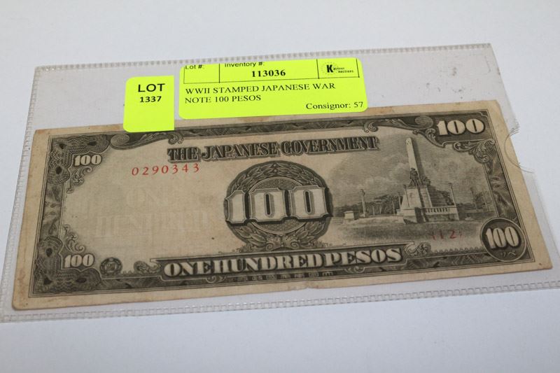 WWII STAMPED JAPANESE WAR NOTE 100 PESOS