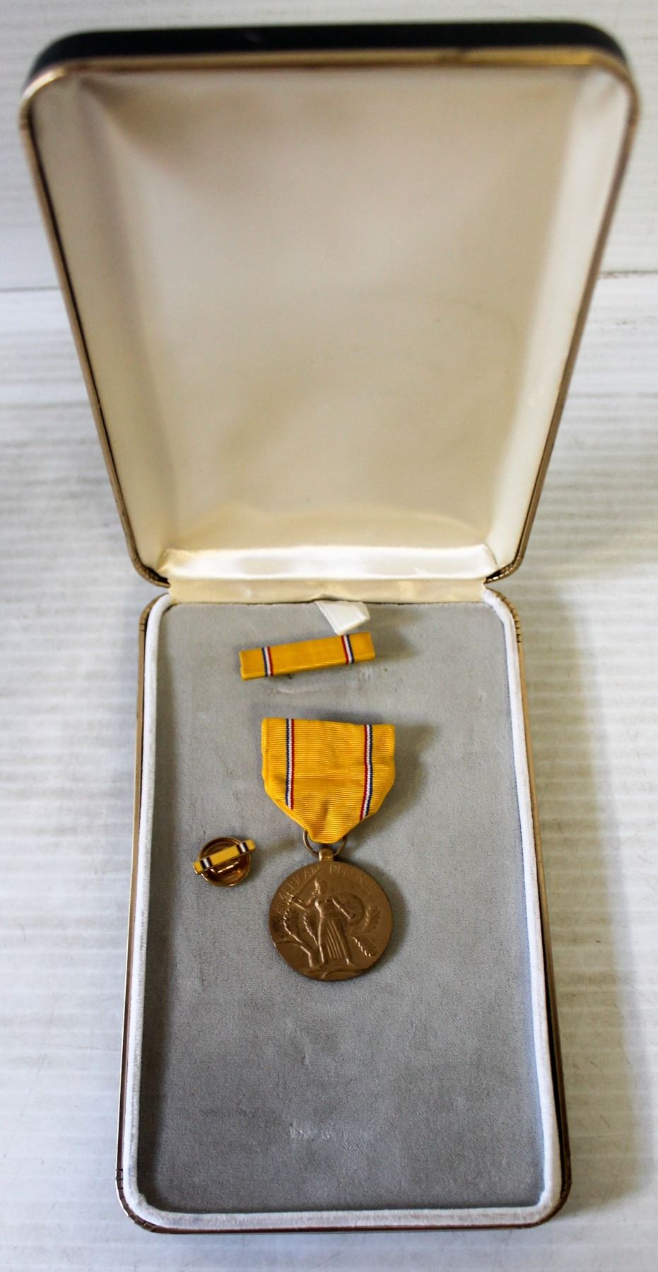 WWII USA AMERICAN DEFENSE WAR MEDAL SET CASE