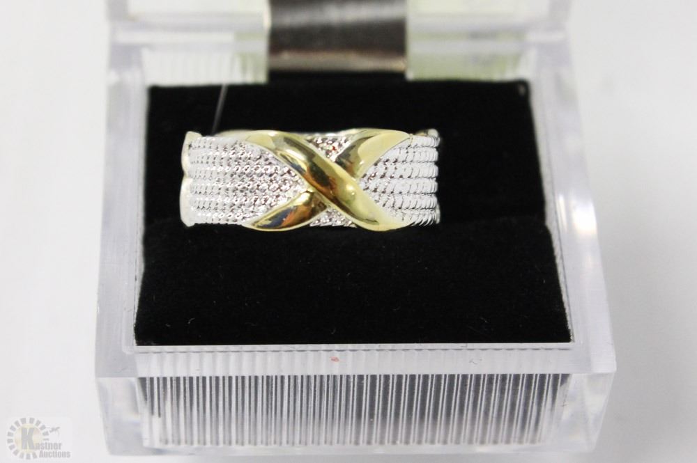 X SHAPE SILVER PLATED RING SIZE 8