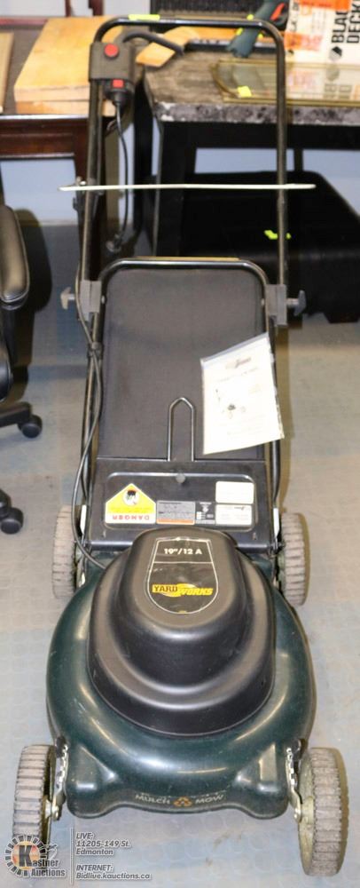 19", REAR BAG MOWER. INCLUDES CART/STAND FOR GRASS CLIPPING BAG