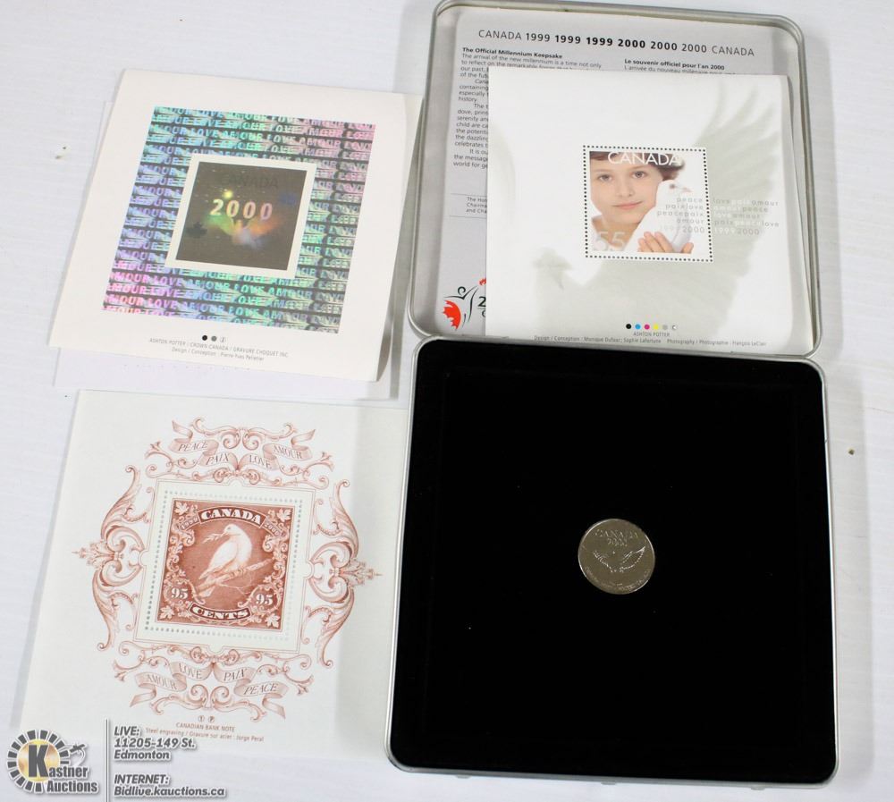 YEAR 2000 RCM MILLENNIUM COIN AND STAMP SET IN TIN