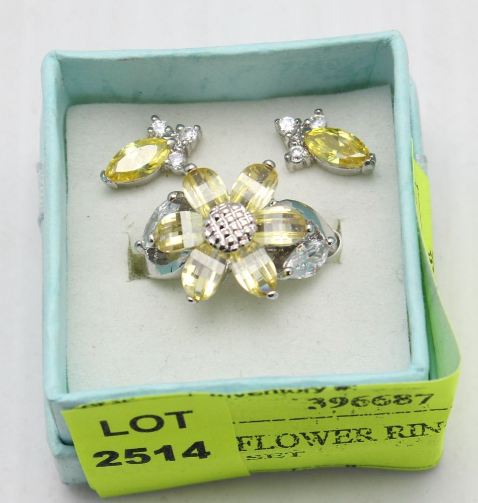 YELLOW FLOWER RING SIZE 6.5 & EARRING SET