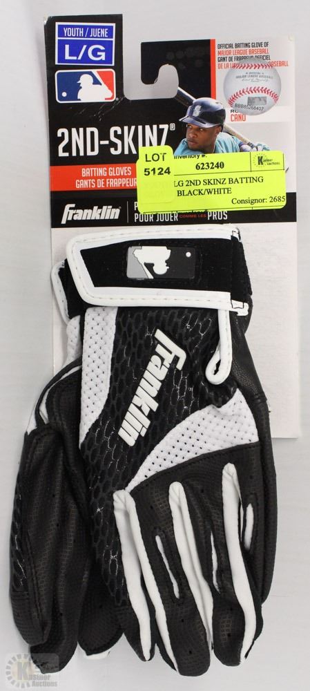 YOUTH LG 2ND SKINZ BATTING GLOVES BLACK/WHITE
