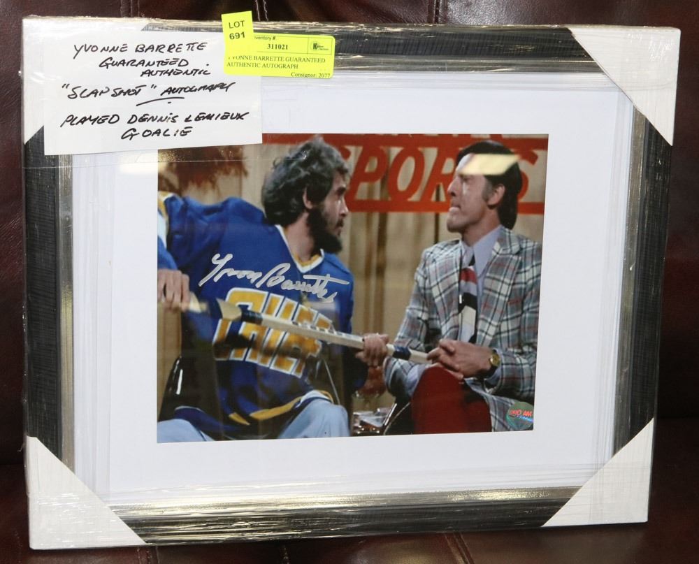 PHOTO FRAMED, "SLAPSHOT", PLAYED DENNIS LEMIEUX GOALIE. COLLECTIBLES