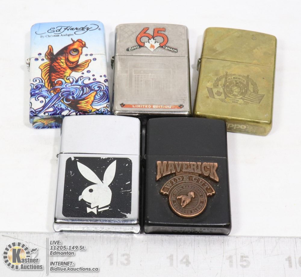 OE LOCAL 955, PLAYBOY, ED HARDY, MAVERICK WIDE CUT, 65 YEAR LIMITED EDITION ZIPPO CANADA