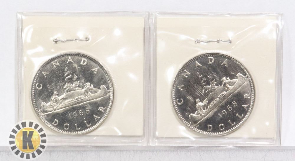 x2 1968 CANADA $1 DOLLAR COINS, UNC. COND.