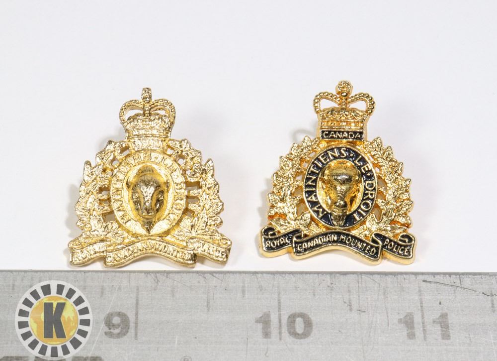x2 GENUINE VINTAGE RCMP COLLAR PINS, USED