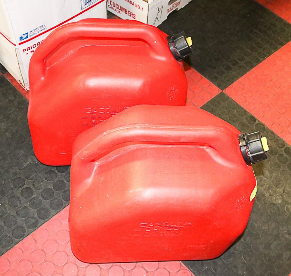 x2 PLASTIC GAS CANS 20 LITRES EACH, USED